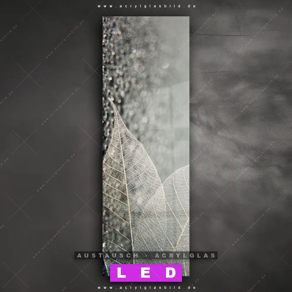 Begriffe wie Blätter, Pflanze, Natur, Nahaufnahme, Vogelperspektive, Draufsicht, Blatt, Grautöne haben dich auf der Suche nach deinem neuen Austausch-Acrylglasbild inspiriert? Dann sollte das Wechsel-Acrylglasbild weiße, durchscheinende Blätter für dein bereits vorhandenes LED Acrylglasbild Canvalight® DIA den Weg zu dir finden.