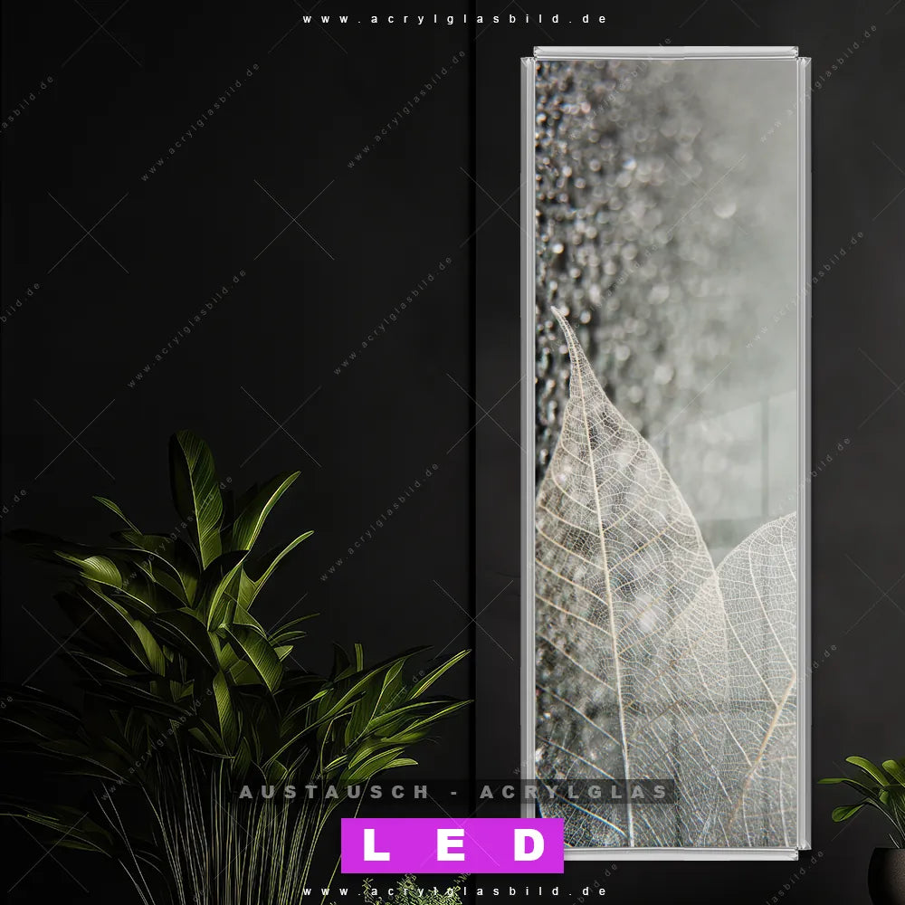 Wechsel-Acrylglas Canvalight® DIA | Weiße Blätter | Schmal