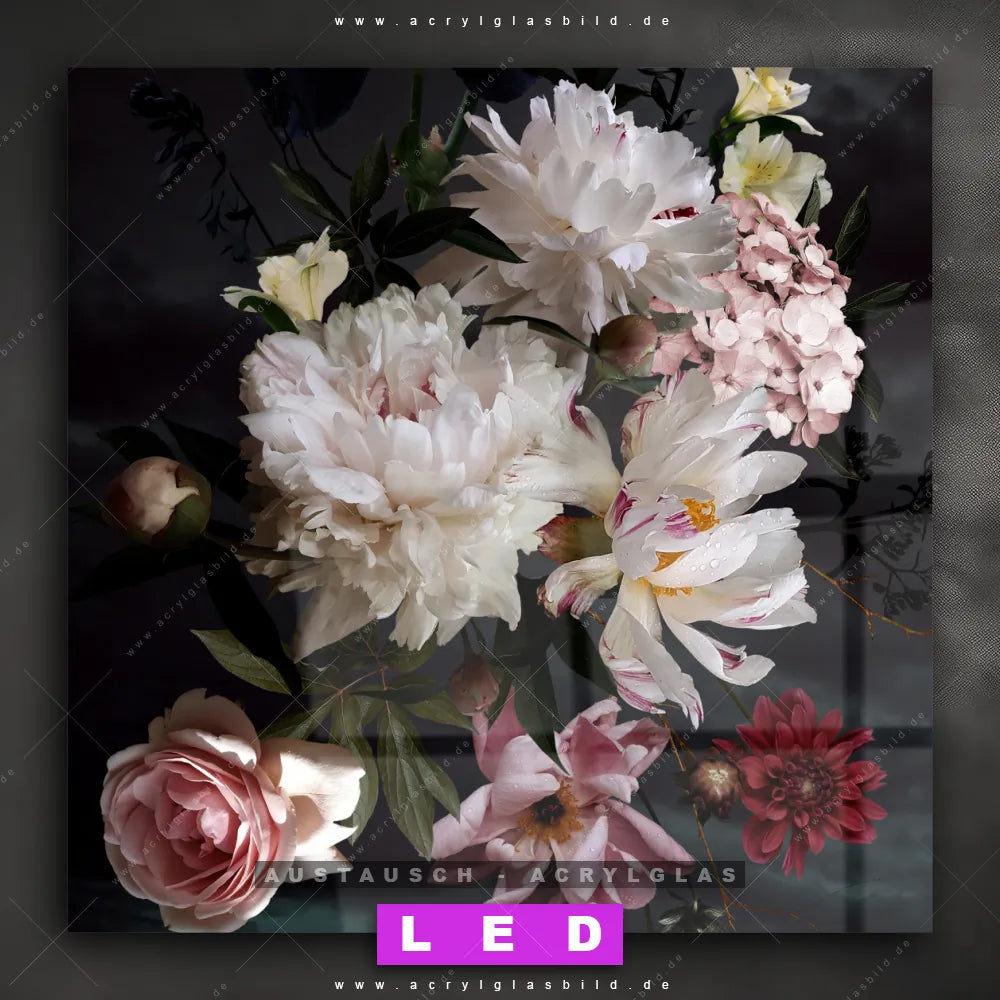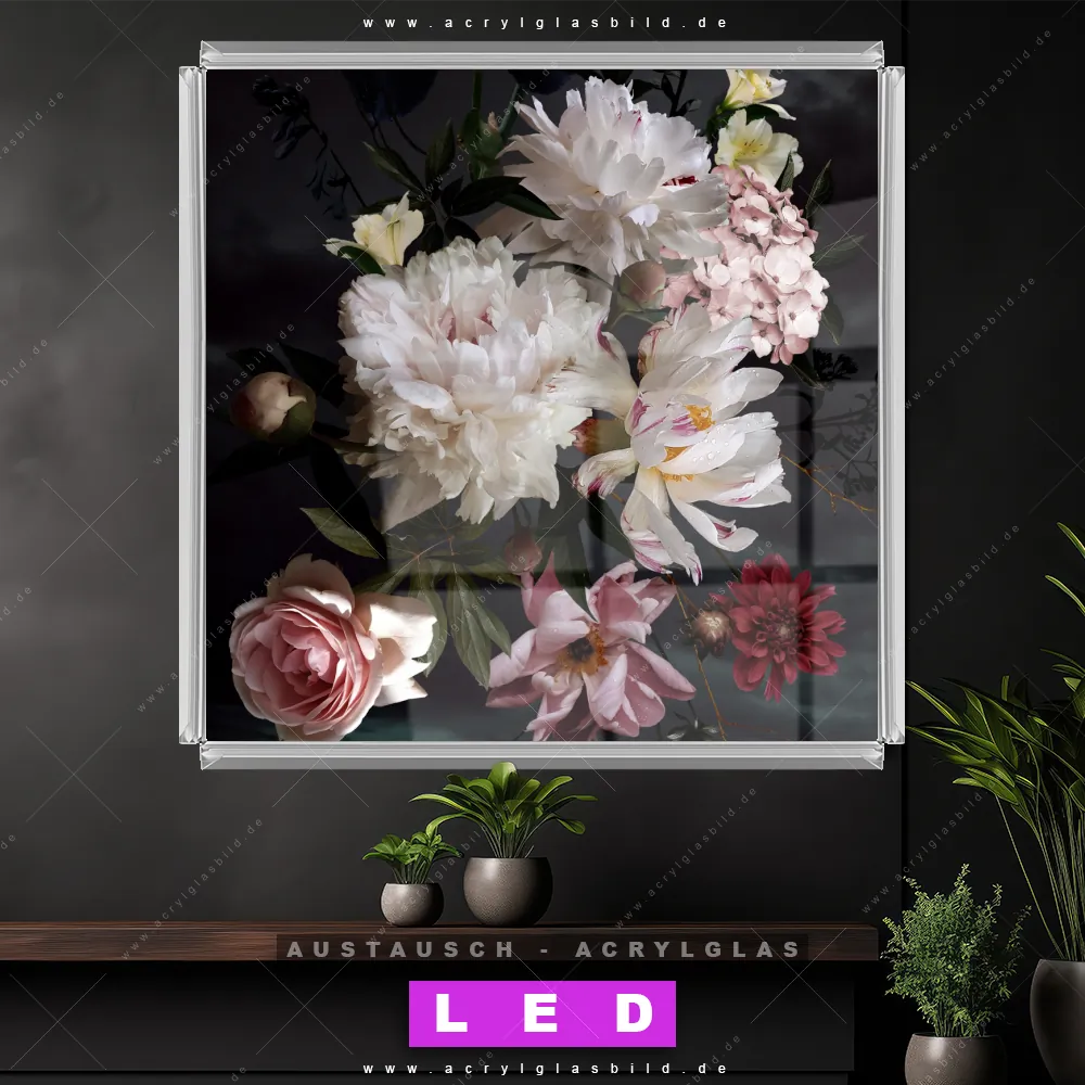 Wechsel-Acrylglas Canvalight® DIA | Weiße Pfingstrosen | Quadrat