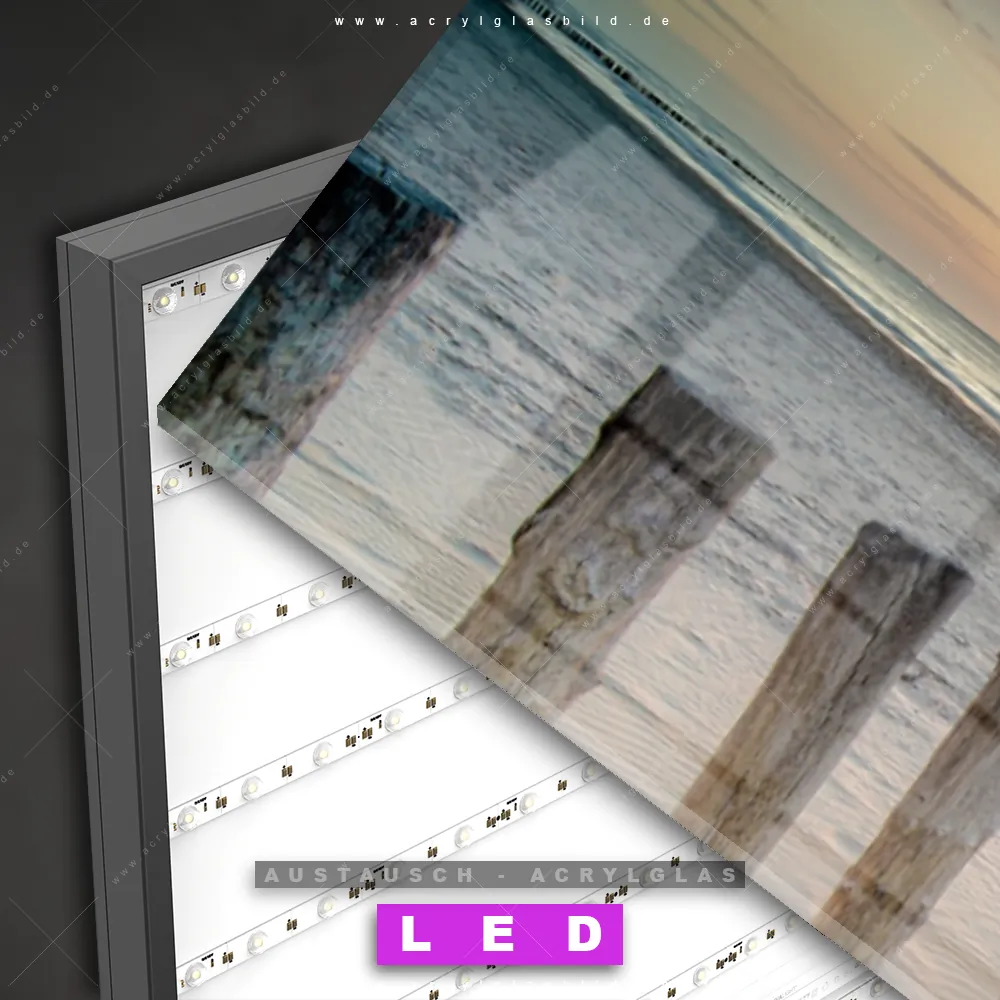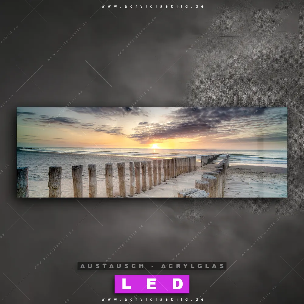 Begriffe wie Deutschland, Herbst, Sommer, Wellenbrecher, Buhnen, Ostsee - Nordsee, Sonnenuntergang - Sonnenaufgang, Urlaub - Reisen, Frühling haben dich auf der Suche nach deinem neuen Austausch-Acrylglasbild inspiriert? Dann sollte das Wechsel-Acrylglasbild Buhne am Meer für dein bereits vorhandenes LED Acrylglasbild Canvalight® DIA den Weg zu dir finden.