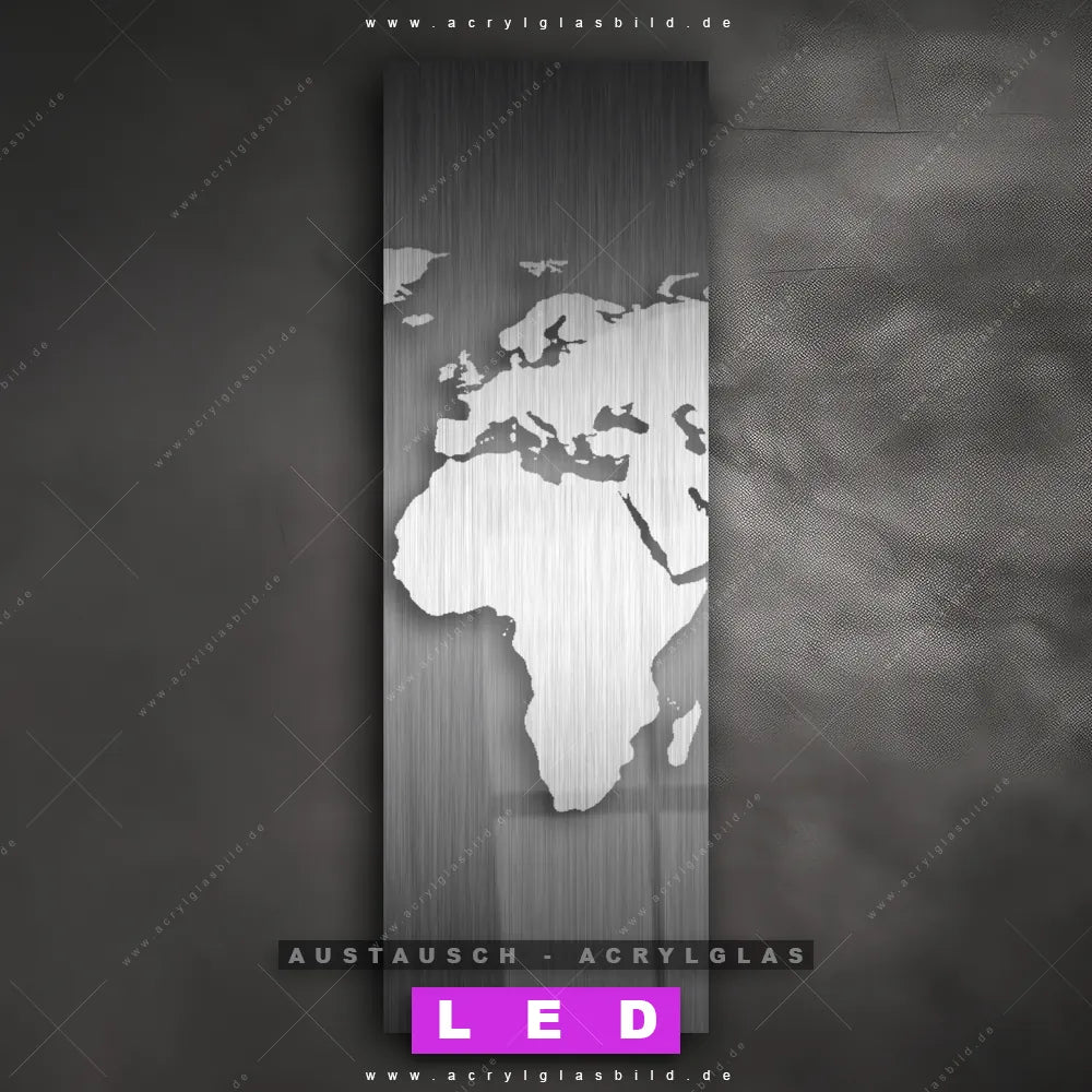 Wechsel-Acrylglas Canvalight® DIA | Weltkarte Edelstahloptik | Schmal