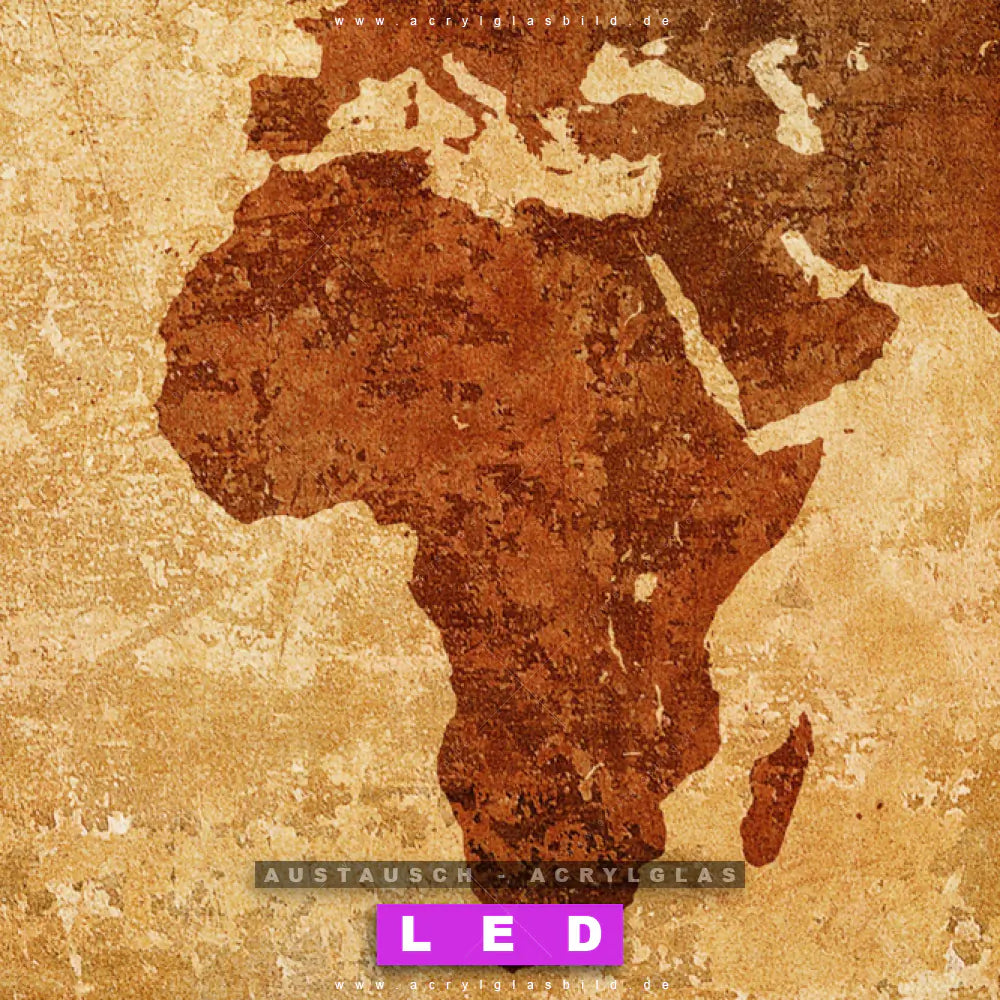 Begriffe wie Weltkarte, Karte, Geografie, World, Map, Reisen, Kontinente, Urlaub, Welt haben dich auf der Suche nach deinem neuen Austausch-Acrylglasbild inspiriert? Dann sollte das Wechsel-Acrylglasbild Karte der Erde Brauntöne für dein bereits vorhandenes LED Acrylglasbild Canvalight® DIA den Weg zu dir finden.