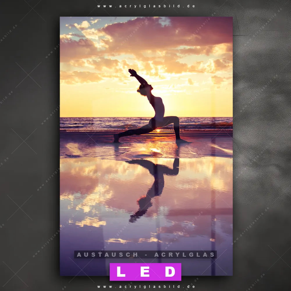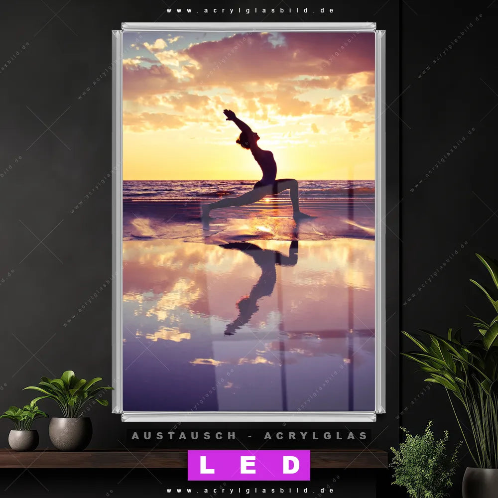 Wechsel-Acrylglas Canvalight® DIA | Yoga am lila Strand | Hochformat