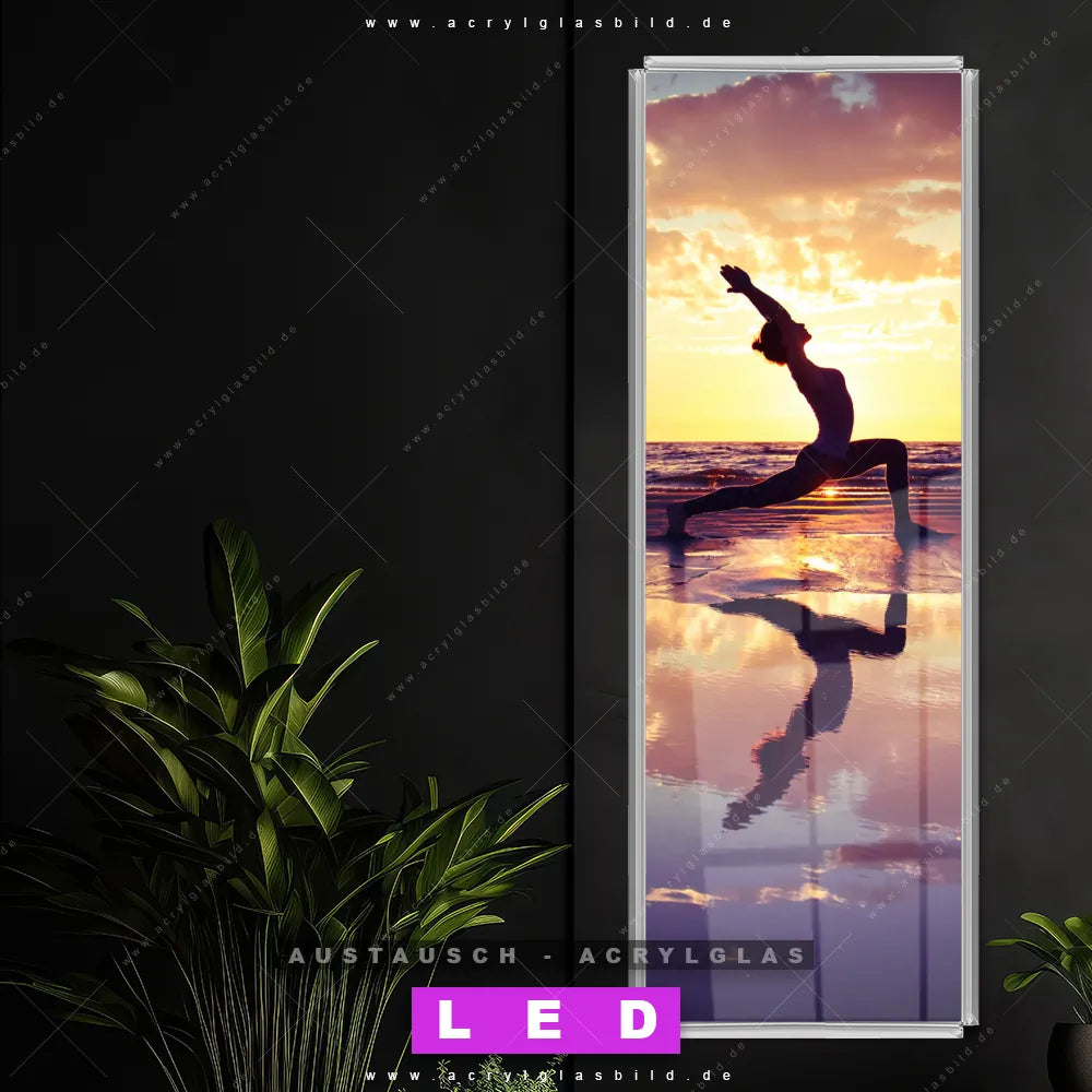 Wechsel-Acrylglas Canvalight® DIA | Yoga am lila Strand | Schmal