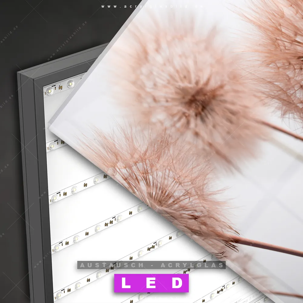 Begriffe wie Blume, Botanik, Pflanze, Natur, Nahaufnahme, Pusteblume, Dandelion haben dich auf der Suche nach deinem neuen Austausch-Acrylglasbild inspiriert? Dann sollte das Wechsel-Acrylglasbild Pusteblumen vor weißem Hintergrund für dein bereits vorhandenes LED Acrylglasbild Canvalight® DIA den Weg zu dir finden.