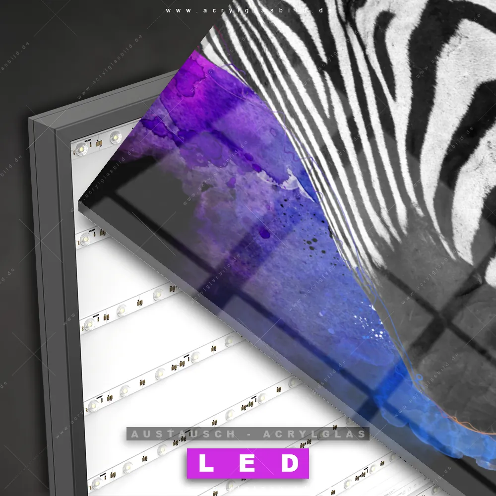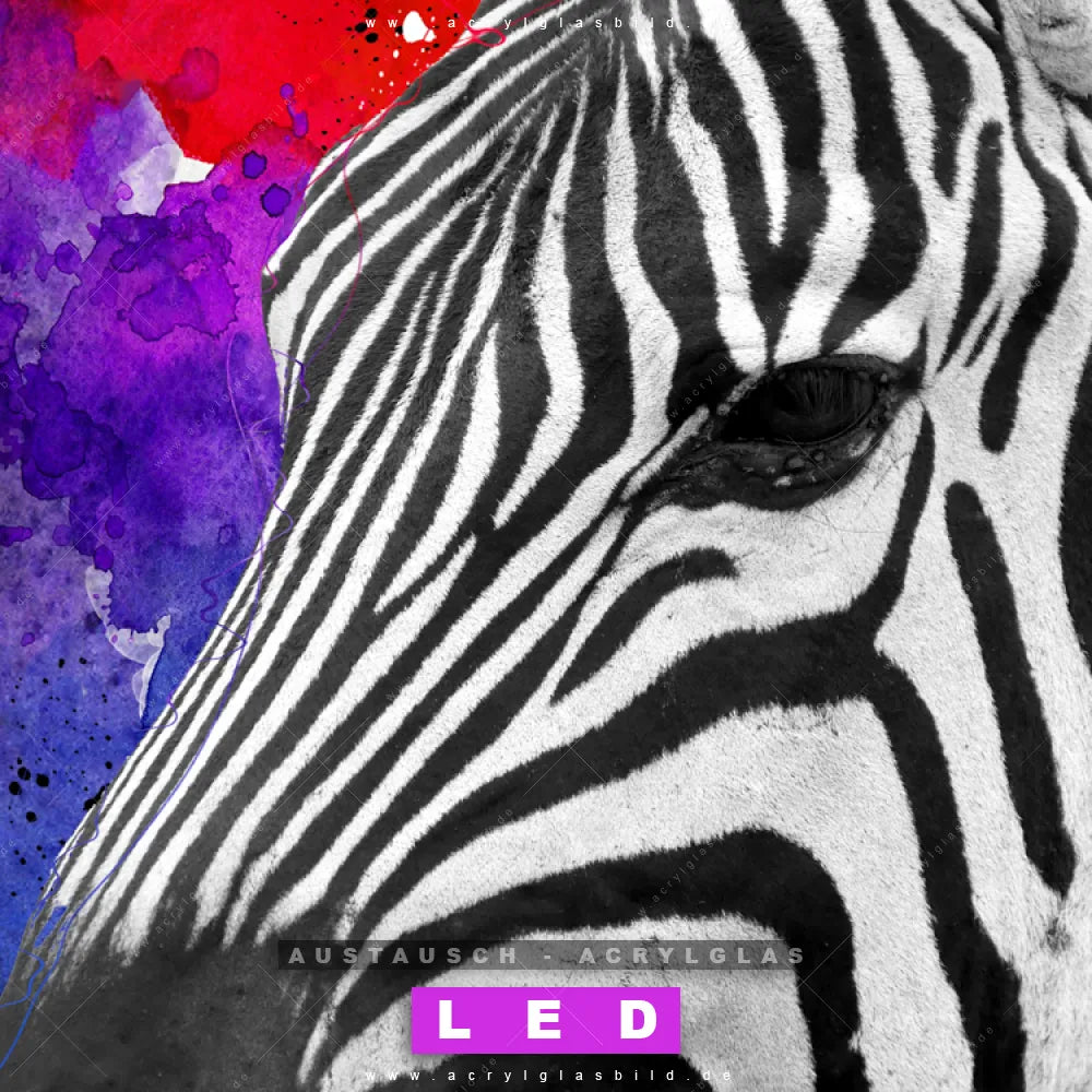 Begriffe wie Pop Art, Kunst, bunt, Tier, Afrika, Zebra, wild, Safari haben dich auf der Suche nach deinem neuen Austausch-Acrylglasbild inspiriert? Dann sollte das Wechsel-Acrylglasbild Farbenfrohes Zebra für dein bereits vorhandenes LED Acrylglasbild Canvalight® DIA den Weg zu dir finden.