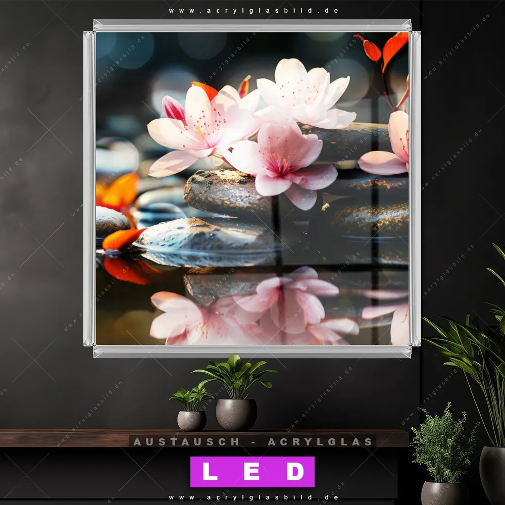 Wechsel-Acrylglas Canvalight® DIA | Zen Steine mit Blumen | Quadrat